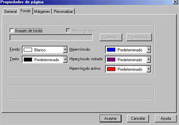 Para insertar una imagen como fondo de la página deberemos activar la casilla correspondiente a Imagen de fondo y localizar la imagen que queramos insertar. Echa un vistazo al apartado de Formatos mas usuales para saber qué tipo de imágenes usar.
